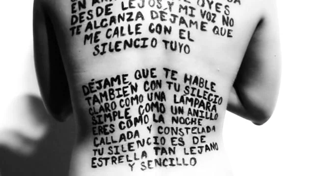 Video based on Poem 15 by Pablo Neruda. The poem is about a man admiring meticulously the little things he sees in his loved one. It is almost like he wrote his thoughts just as they came through his head. Her curves and her perfect “imperfections”. In this video, we are seeing what the man is seeing: the woman.